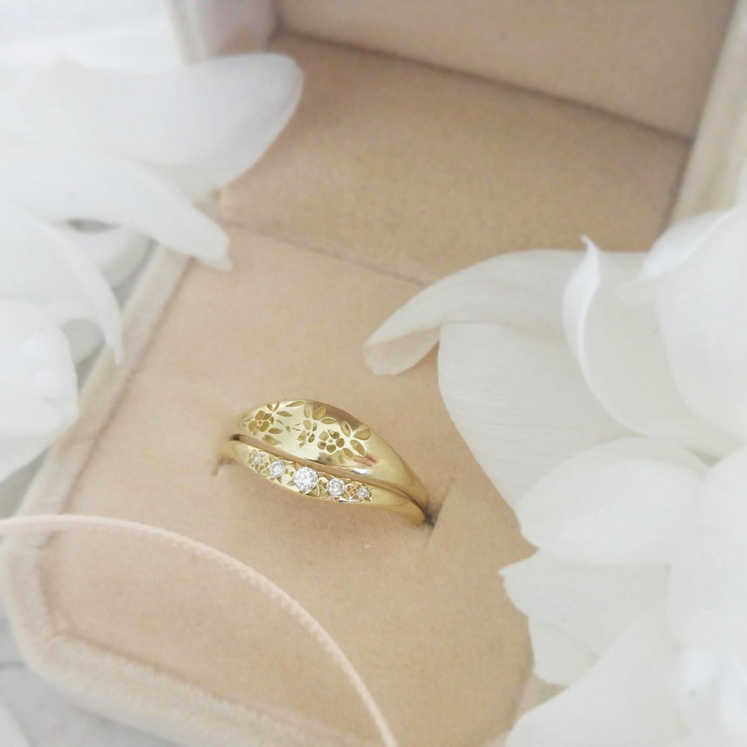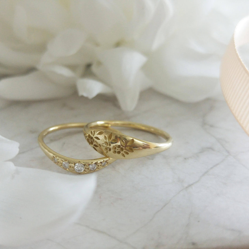 Floral engagement and wedding rings, 14k gold alternative bride ring set